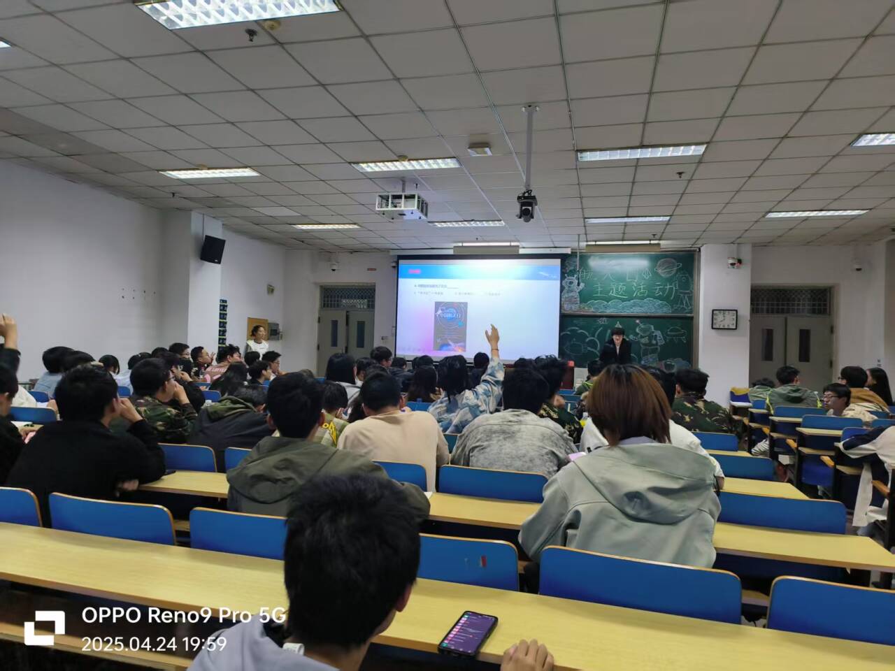 科学技术协会精心筹备的 “4・24 航天日” 主题科普晚会,在11112H教室璀璨启幕。此次活动以晚会为载体,致力于普及航天知识,激发同学们对航天事业的无限向往与浓厚兴趣,吸引了近百名同学齐聚一堂。