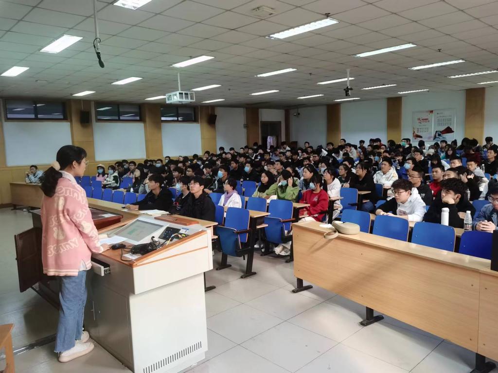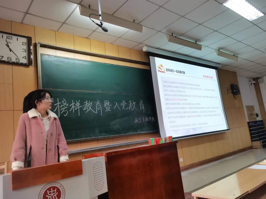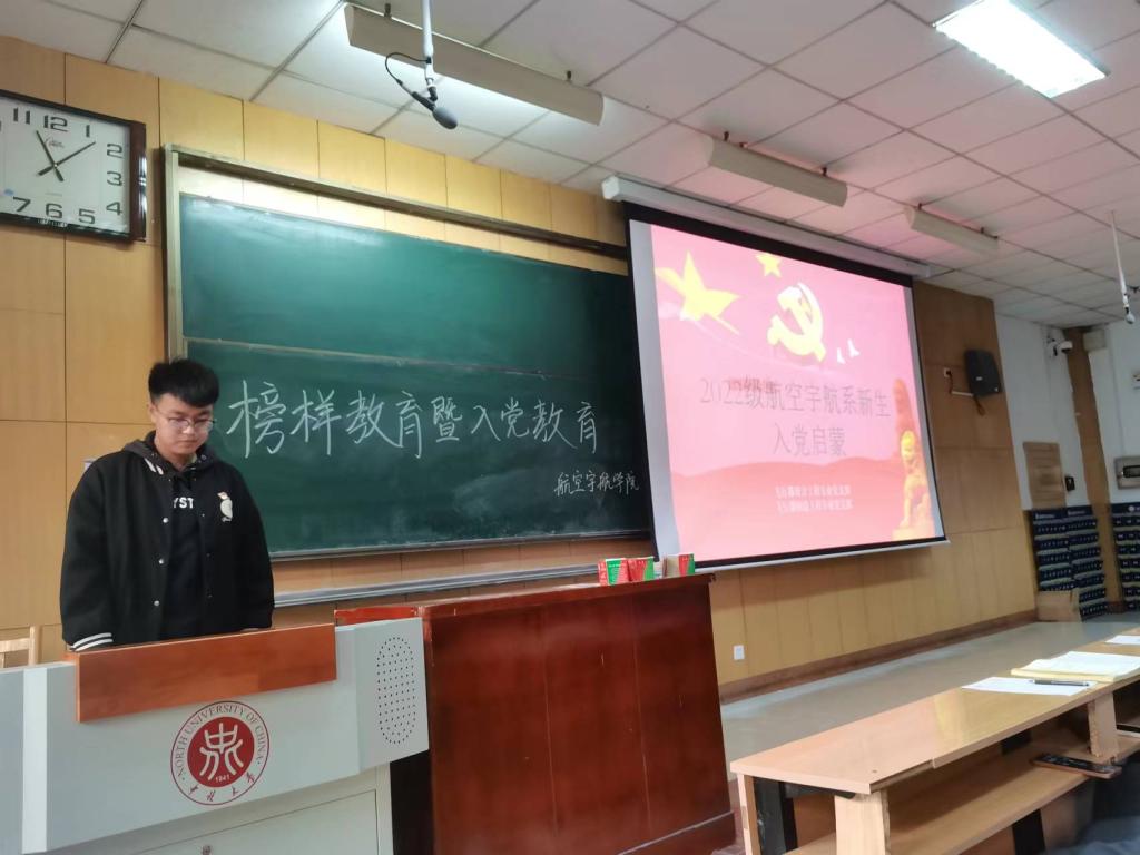 在11108教室召开2022级榜样教育暨入党启蒙大会,22级航天类专业班主任段雪倩出席会议,19级吕倩,侯贝然,鲍芃荣作为榜样分享了他们的学习考研经验,全体新生参与本次大会。